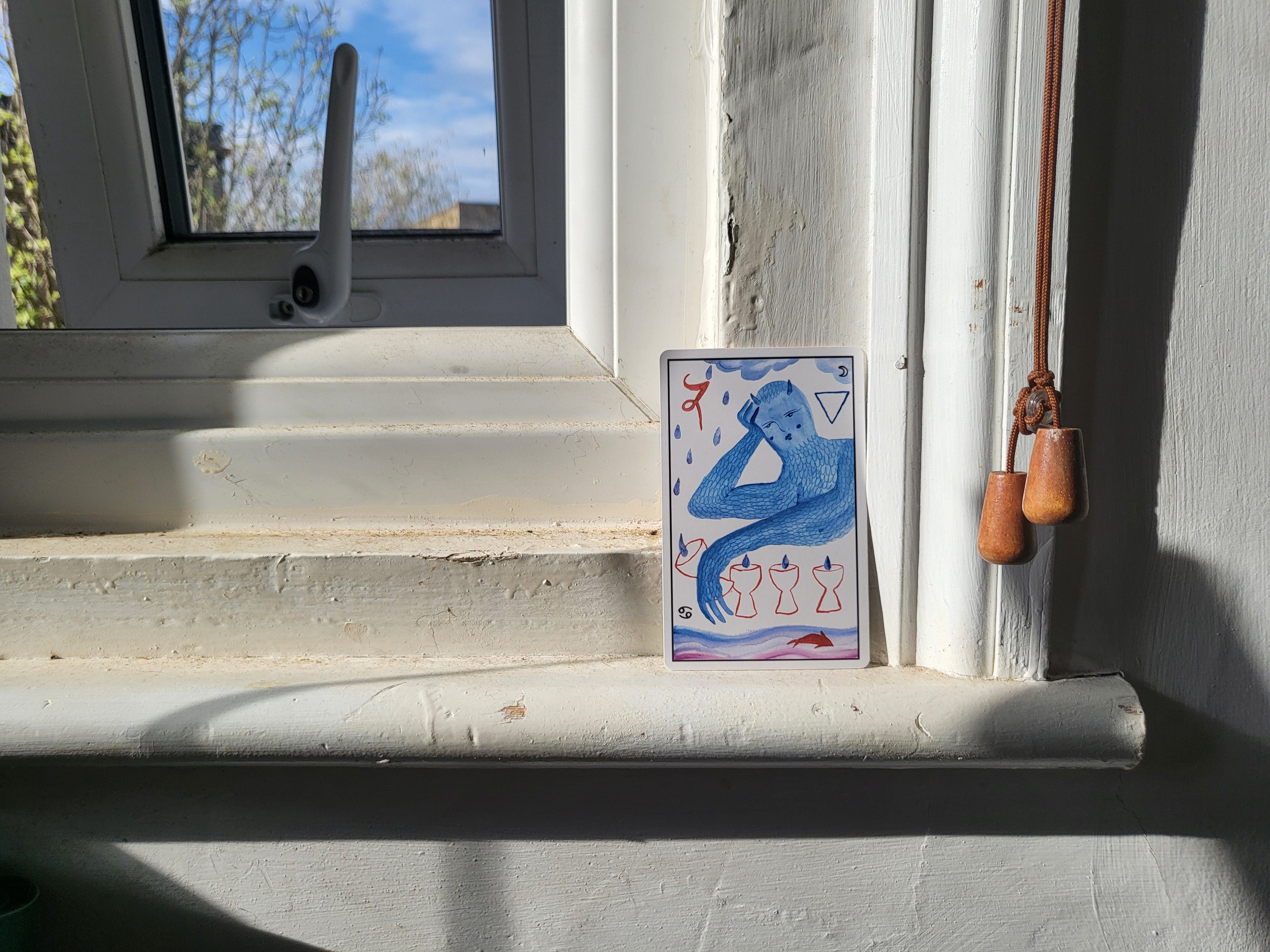 the 4 of cups came up here as guidance for the next 30 days or so. it’s one of those cards that many people roll their eyes to because this is a card of stillness. of course, living under the structures of capitalism, we have absolutely been conditioned to restlessness in the absence of movement. so the dread is understandable.